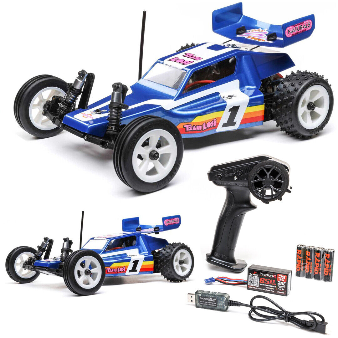 For years, racing enthusiasts demanded a re-release of the JRX2 buggy, the original vehicle that made Losi a worldwide force to be reckoned with, and now they get their wish in a 1/16th scale package. The Losi Mini JRX2 Buggy honors its roots by creating a mini buggy with a classic look and 21st-century performance. With a 5-link rear suspension providing maximum grip in loose conditions, aluminum shocks, and era-specific ribbed front tires, and 4 row step pin rear tires, you get more from a Mini than ever before. It features a rear motor configuration like the original and three different trim schemes that mimic the original box art schemes of the era, all in a total ready-to-run package. Everything about this buggy is designed to deliver a jaw-dropping experience.