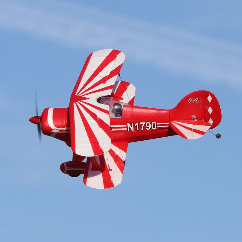 The E-flite® Pitts S-1S scale biplane is an officially licensed replica of the full-scale aerobatic icon that's expertly designed and equipped to deliver a flight experience that's easy to enjoy. The overall dimensions capture the revolutionary Pitts outlines while EPO construction helps present scale detail with a high level of durability. Even though installing and removing the wings is incredibly simple and tool-free, this beautiful bipe is sized so you probably never need to take it apart. Like the full-scale, under the hood is the kind of power that distinguishes this aerobat as a potent performer with virtually unlimited potential. Straight Up vertical climbs, dizzying snaps, crisp rolls and sharp corners are just a few of its specialties. Scale pilots will appreciate its smooth flight performance and level of detail, while everyone will enjoy its power system versatility. Whether you choose to fly this one-of-a-kind aerobat on a 3S or 4S LiPo, this Pitts S-1S bipe will deliver an aerobatic experience without equal.