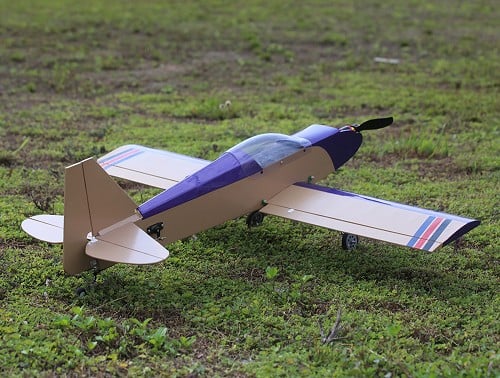 This plane has a 32 inch wingspan and it is 100% balsa and plywood construction, covered and ready to assemble.